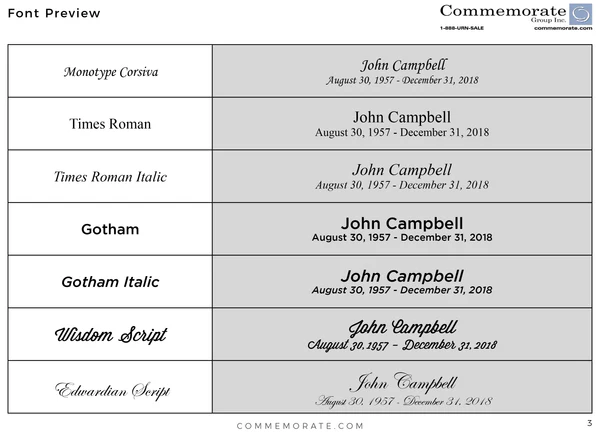 Engraving options available